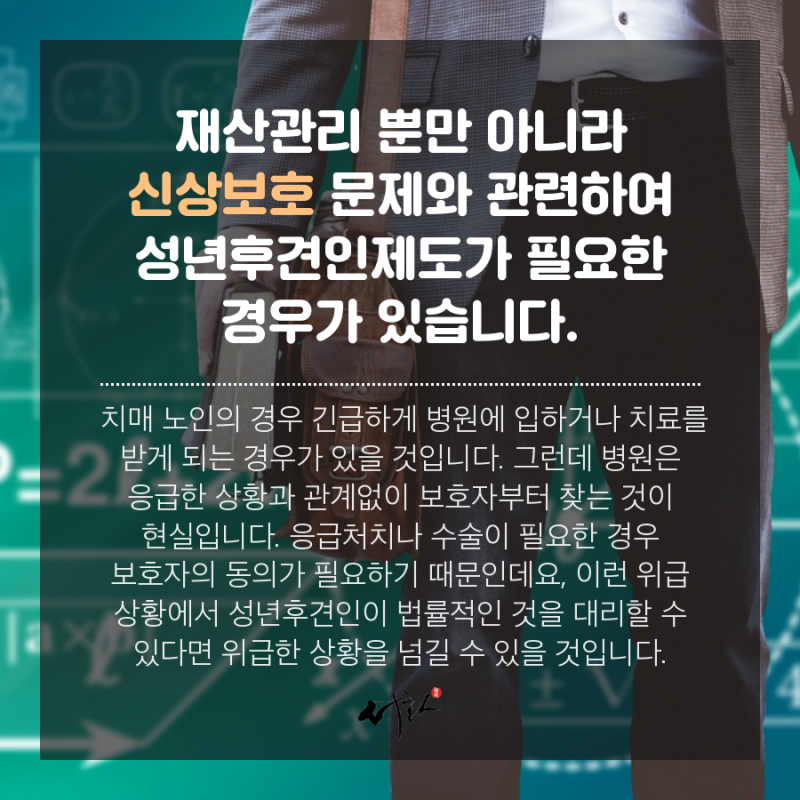 법무법인 정원, 송인규 변호사 성년후견인 제도 신청이란?성년후견인 제도의 신청이 필요한 상황은?성년후견인 제도에 선임된 후견인의 권한은?