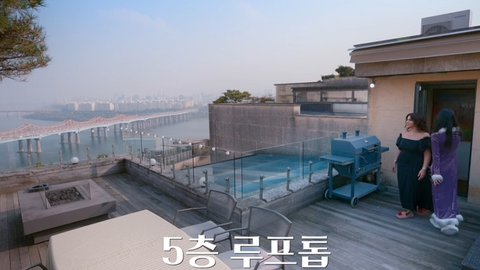 5층 루프탑에서 바라보는 한강뷰는 정말 예술이에요! 럭셔리 스카이라운지에서만 볼 수 있는 한강의 경치를 매일 즐길 수 있다는 것은 정말 최고의 축복입니다. 유희는 이곳이 두 번째로 좋아하는 곳이라고 말했다. 첫 번째는 옷장입니다. 나는 그녀의 옷장이 어떤 모습일지 보고 매우 기뻤습니다.